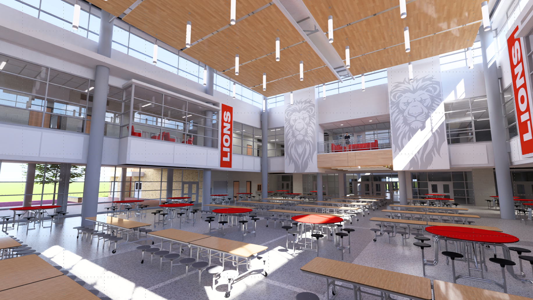 The project will also include several facilities detached from the main building. These buildings are a maintenance building, greenhouse, concessions building and a stadium press box. Construction will occur in phases over a four year period to minimize the impact to the existing building/students.