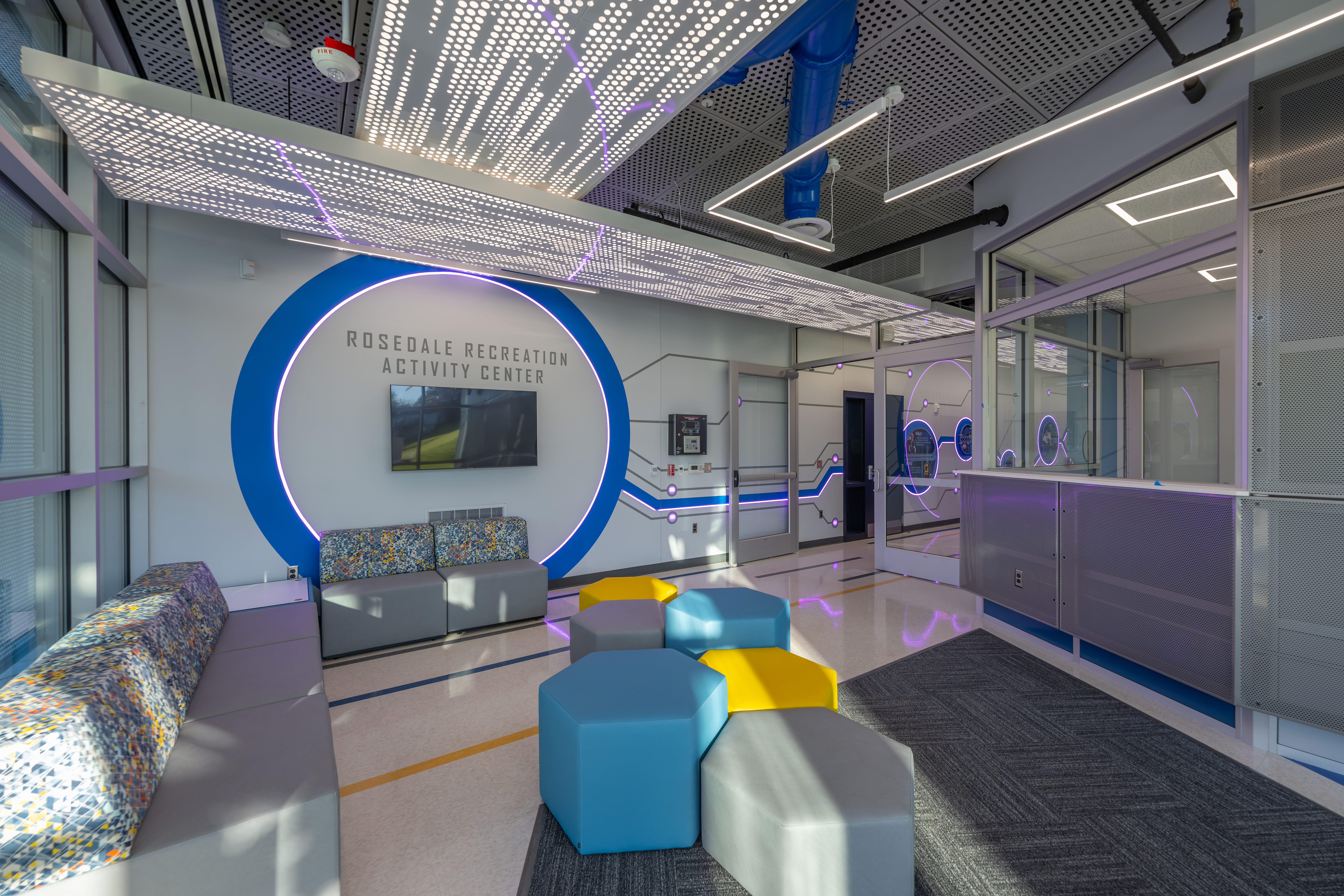 BKM served as the MEP engineer for the Rosedale Recreation Activity Center. This approximately 14,000 SF new facility is themed to reflect the surrounding community and includes a gymnasium, multi-purpose room, several activity rooms, and an e-gaming space. The building will host recreational activities and community meetings. The primary HVAC system is a packaged rooftop unit serving the gym and a VRF / DOAS system for the rest of the building. LED lighting was included throughout, and a rooftop solar PV system was provided.