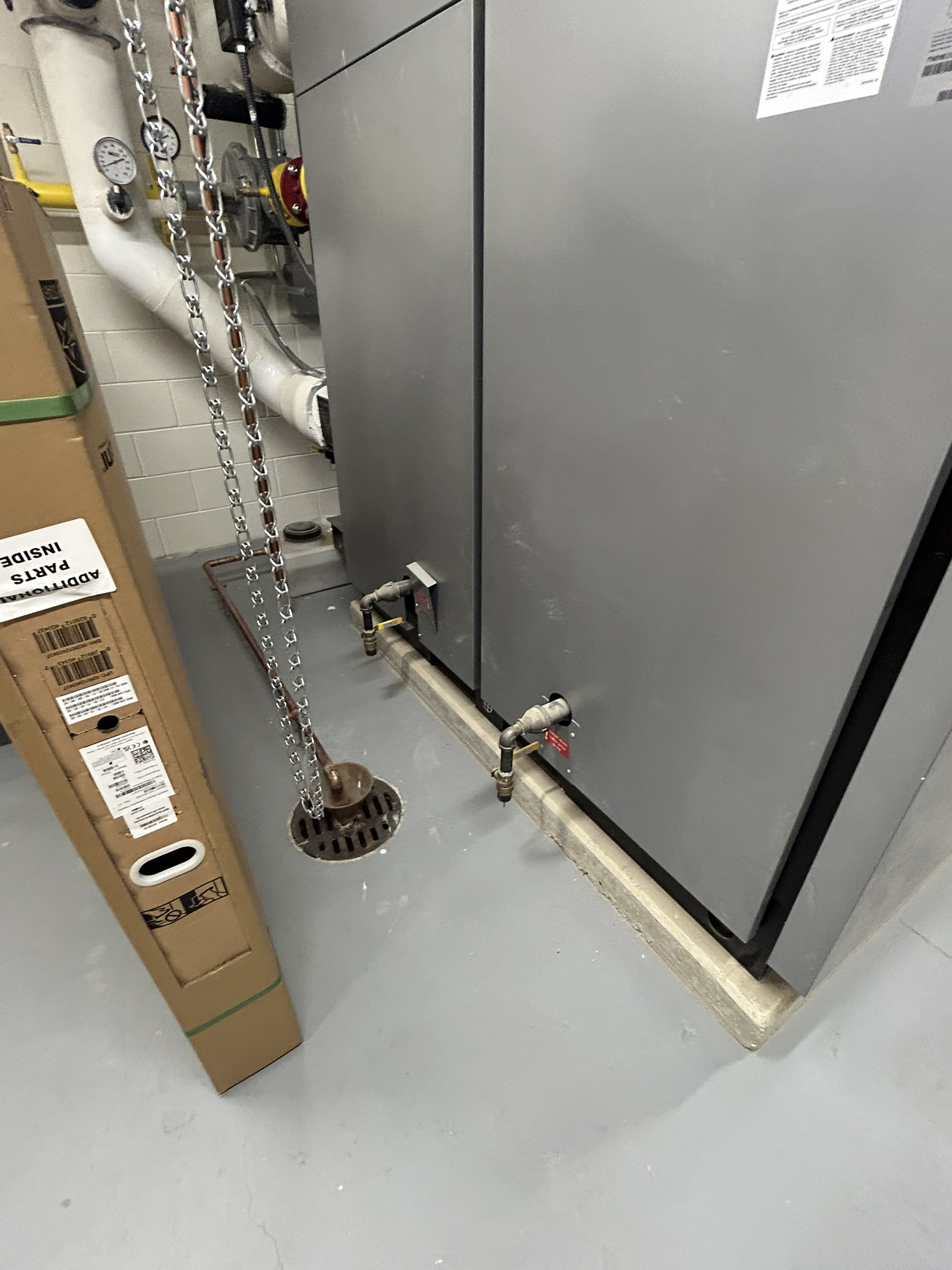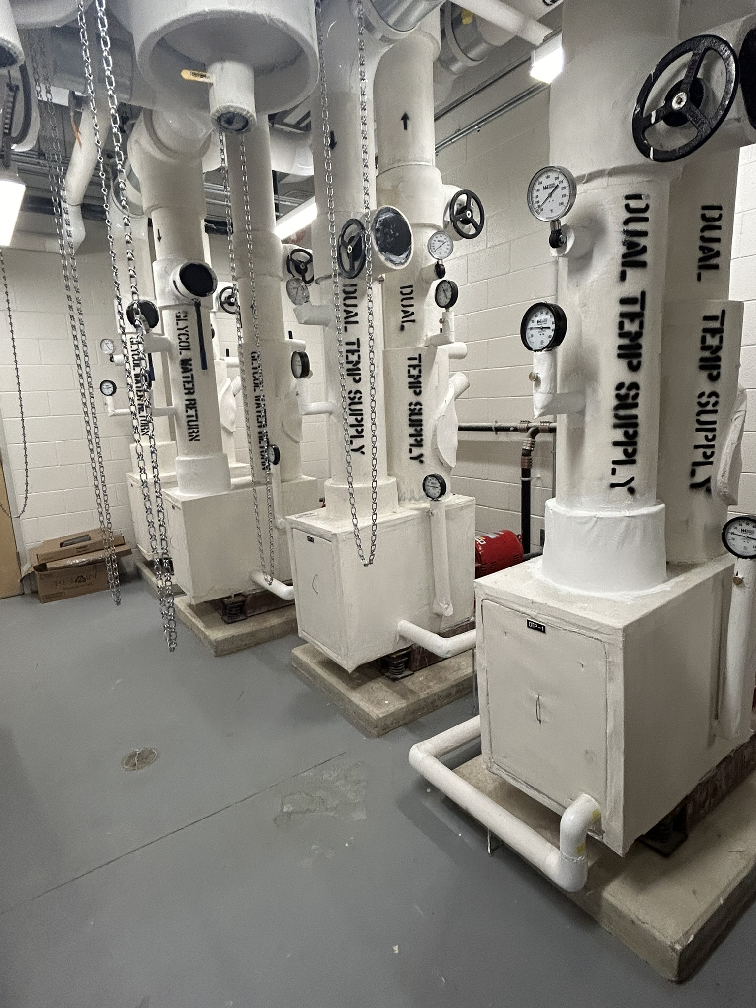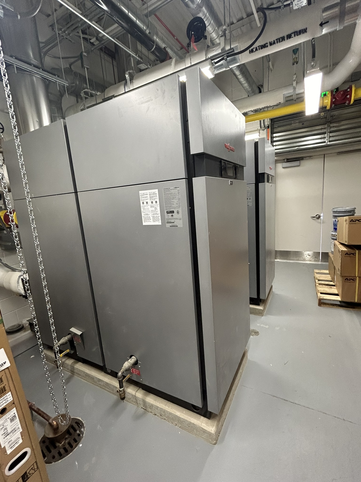 The mechanical system designed for this school includes a chiller and boilers as the main cooling and heating sources for the building. Chilled and heating water are circulated throughout the building to serve fan coil units (FCUs) in each classroom. The FCUs are ducted, above ceiling, re-circulating units which provide heating and cooling to each occupied space. Ventilation air is provided through rooftop DOAS (dedicated outside air system) units with energy recovery wheels. The administration area and media center are served by air cooled heat recovery VRF systems so that they can operate independent from the central chiller. These spaces also have a DOAS unit for ventilation purposes. The gymnasium, cafeteria and before/after care area are each equipped with a single zone air handling unit with a chilled water coil (for normal operation) and a DX coil (for summer operation when the chiller is de-energized).