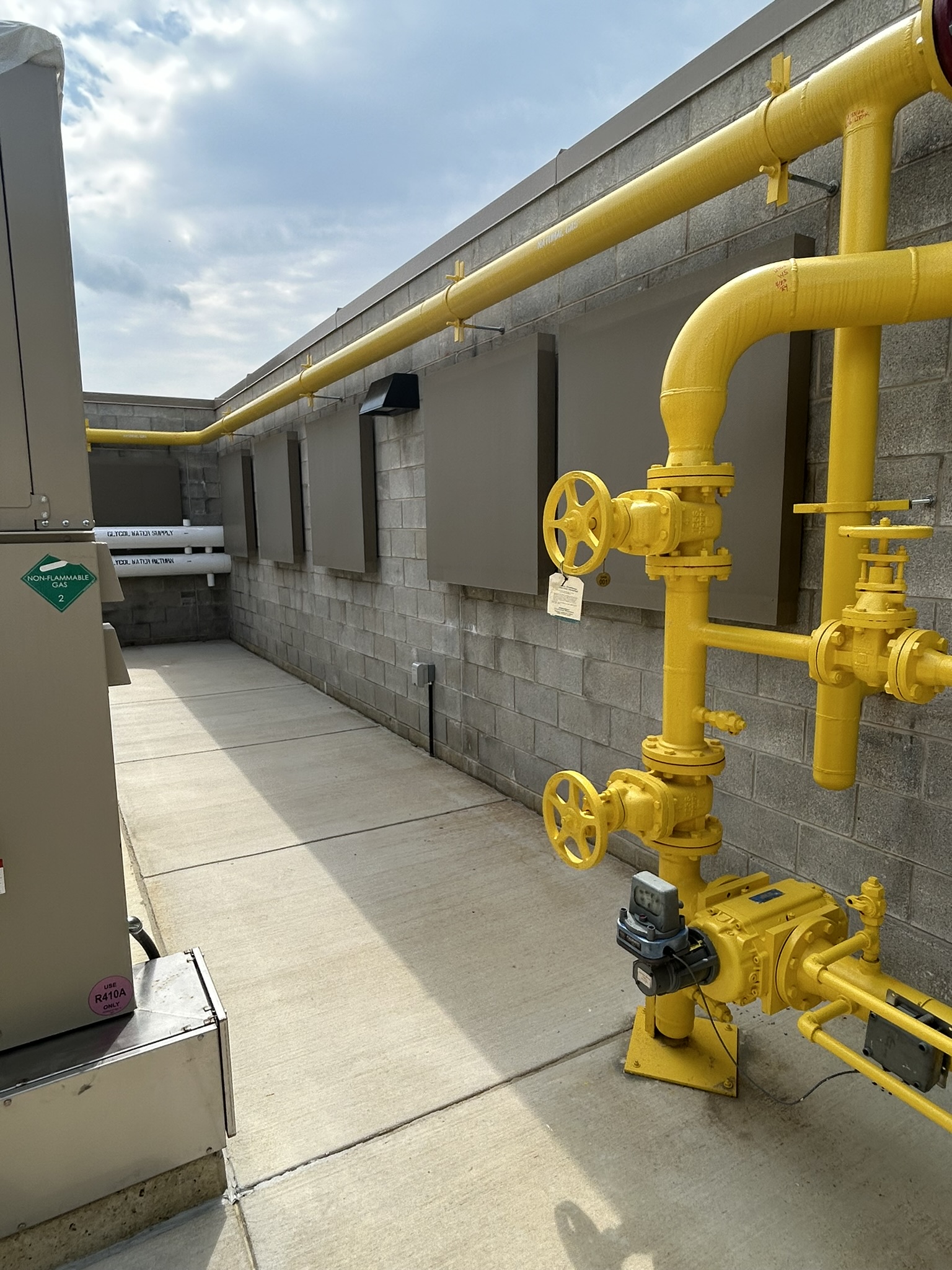 The building is served by a 2,500 amp, 480 V/ 3 phase electrical service. The school is equipped with a permanent 250 kW gas fired generator to meet the life safety and optional standby needs of the building and also has a portable generator connection box for use when the permanent generator is out of service. The school is also equipped with LED lighting throughout and includes provisions to accommodate future solar PV panels on over 40% of the roof area.